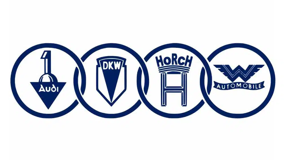 Interessant: Ursprünglich wurde dieses Symbol nur auf den Rennwagen der Auto Union verwendet, nicht auf den Alltagsfahrzeugen. Jede Marke behielt zunächst noch ihr eigenes Emblem.